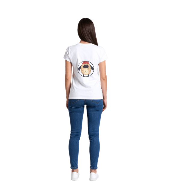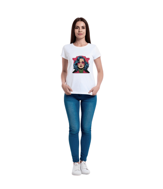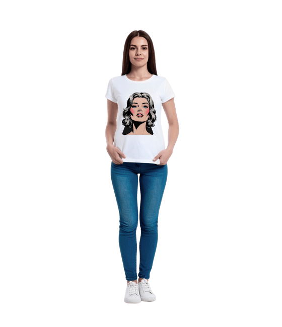 Купить женскую футболку с принтом спереди можно онлайн — качественная DTF-печать на 100% хлопке (180 г/м²).