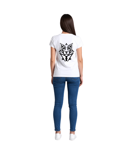 Женская футболка с принтом сзади — стильный выбор для повседневного образа или подарка.